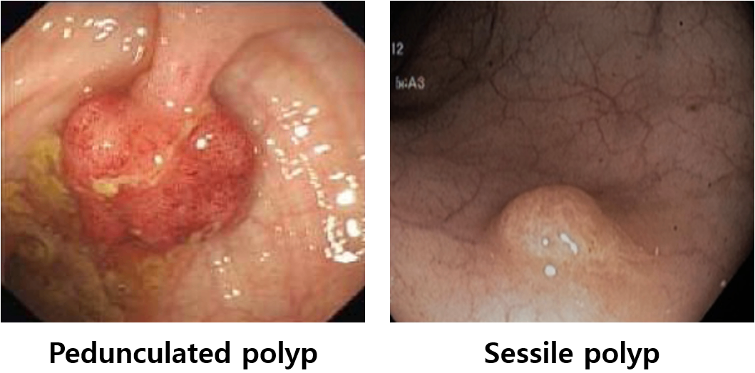 (1) 목 있는 폴립(pedunculated polyp): 악성 가능성이 상대적으로 낮음