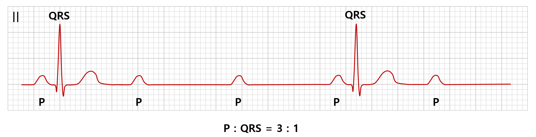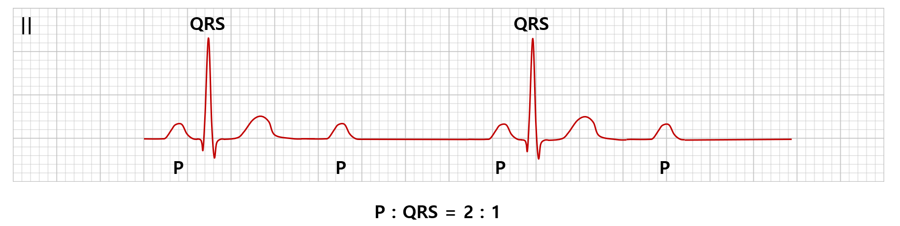 ① P파가 2회 지나갈 동안 QRS군은 1회 지나감