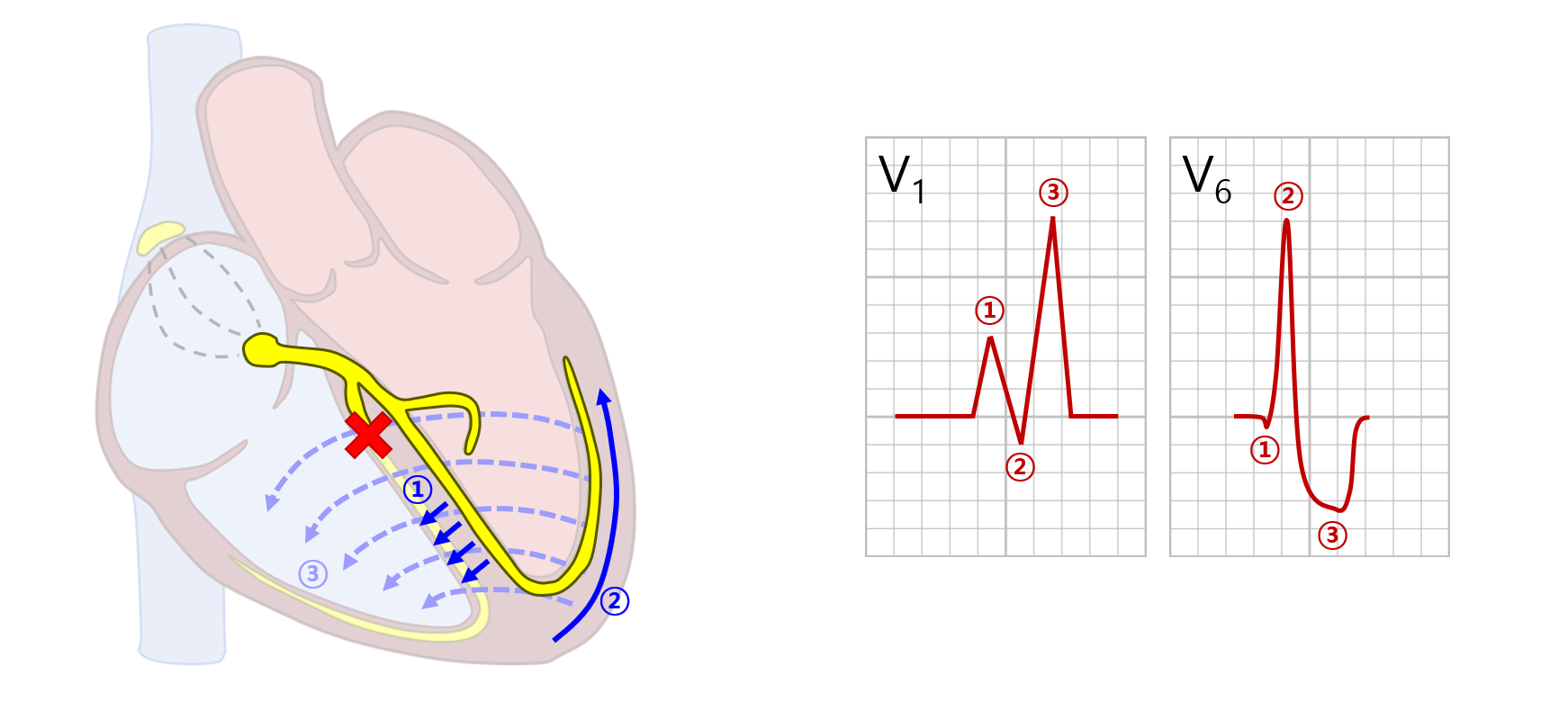 ① LBB가 비정상이므로 Rt. → Lt.로 심실중격이 탈분극