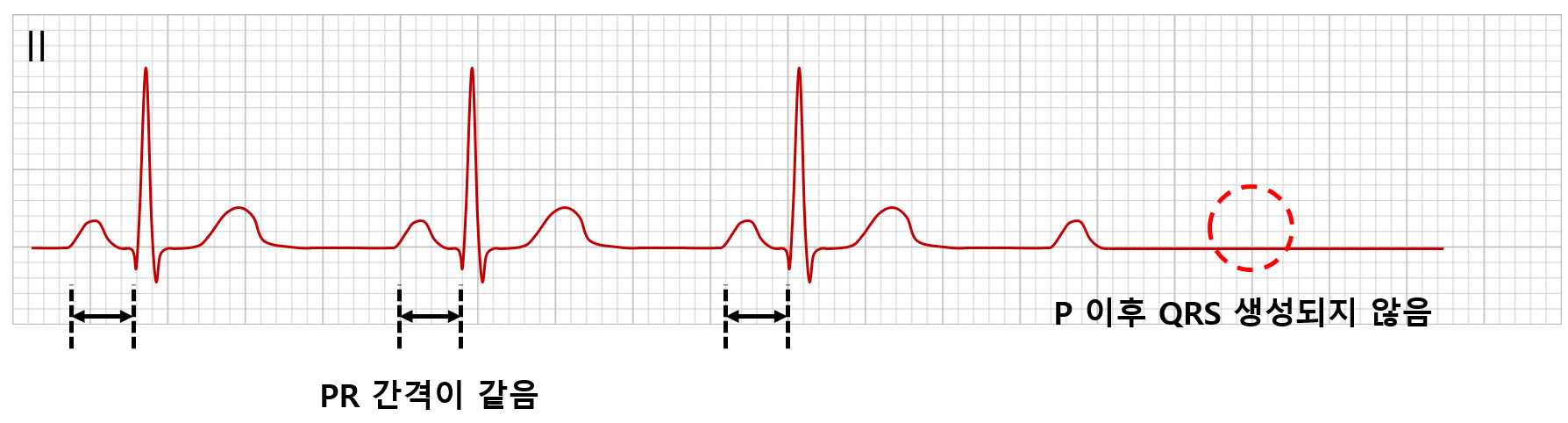 • PR 간격 변화 없이 전도 차단 | • 증상 관계없이 영구적 pacemaker | |