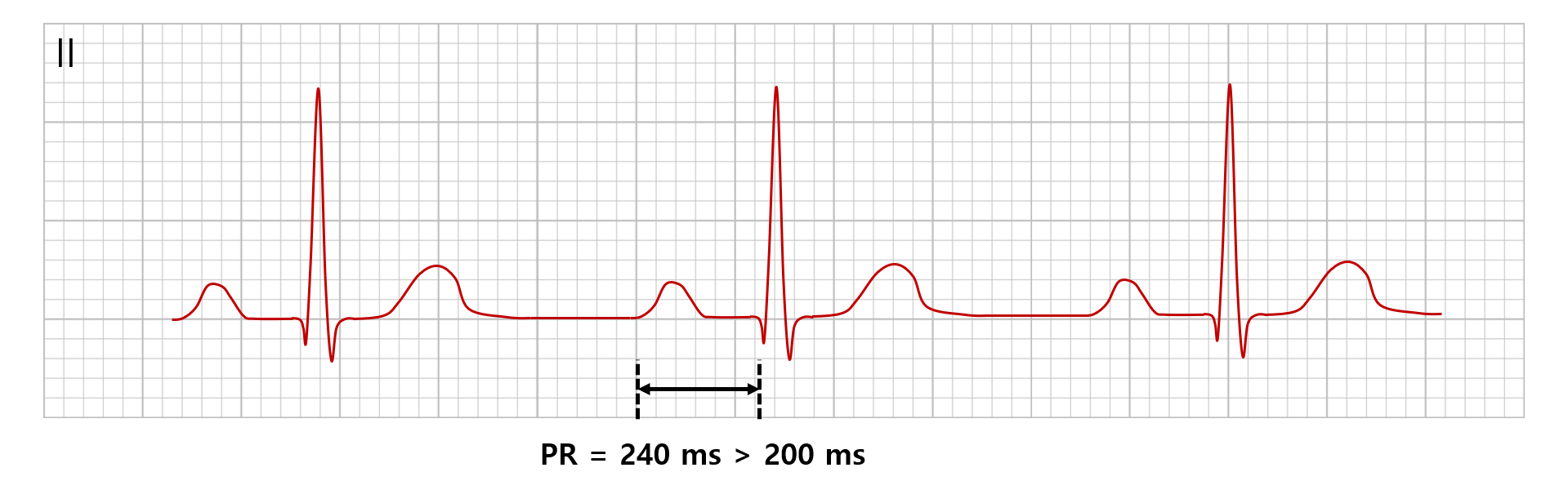 • PR 간격 길어짐 (> 200 ms) | • 무증상: 경과관찰 • 증상: Pacemaker | |