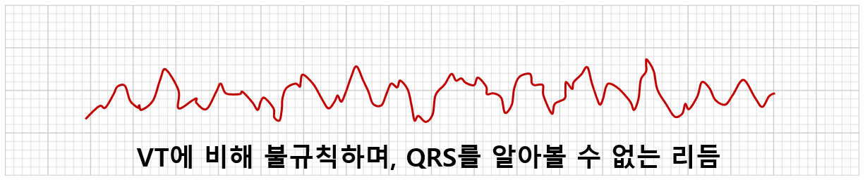 • 식별 불가능한 QRS군 • 불규칙한 진동파 | • CPR + defibrillation • 예방: ICD | |