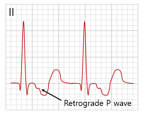 • Regular narrow QRS tachycardia • Retrograde P or P 안보일 수 있음 | • 혈역학적 불안정: DC cardioversion • 안정: Vagal maneuver, adenosine, BB, non-DHP CCB • 재발 예방: Catheter ablation → BB, CCB | |