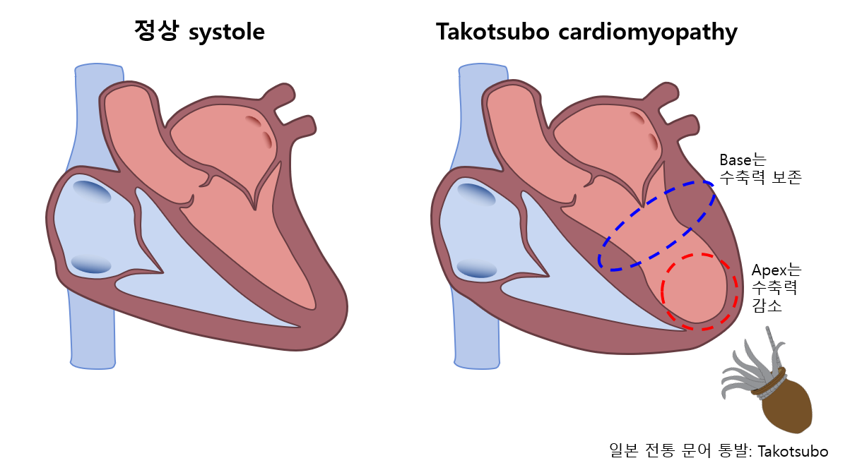 * 심실의 특징적 모양 때문에 Takotsubo cardiomyopathy로도 흔히 불린다. 일시적인 현상이기 때문에 심근병증으로 보지 않는 의견도 존재한다.