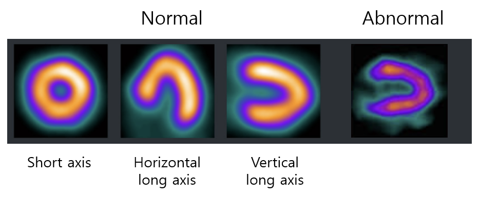 (2) Perfusion이 적은 부분은 방사선동위원소를 적게 uptake하여 신호가 낮아짐
