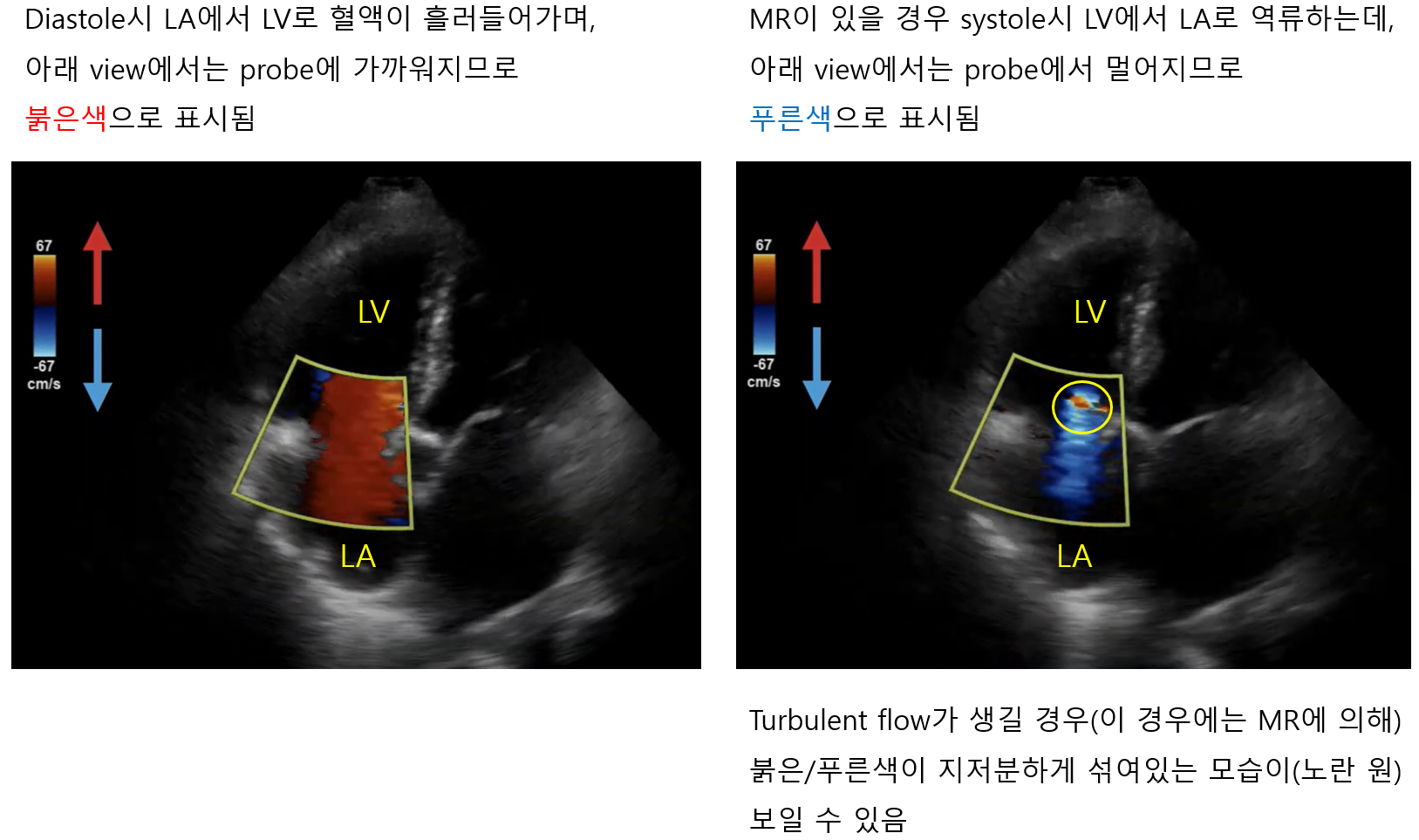 (3) Color Doppler, pulse wave Doppler, continuous wave Doppler 등이 있으며, 주로 국시에서는 color가 주어짐