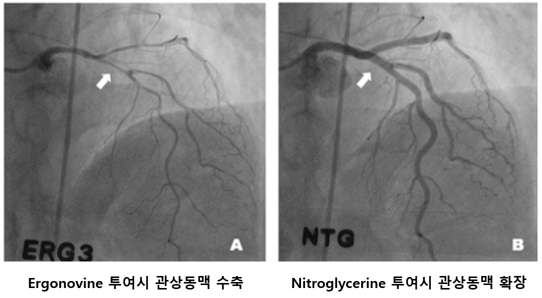 ③ Coronary a. spasm 확인 이후 재빨리 nitrate 투여 → 혈관 재확장