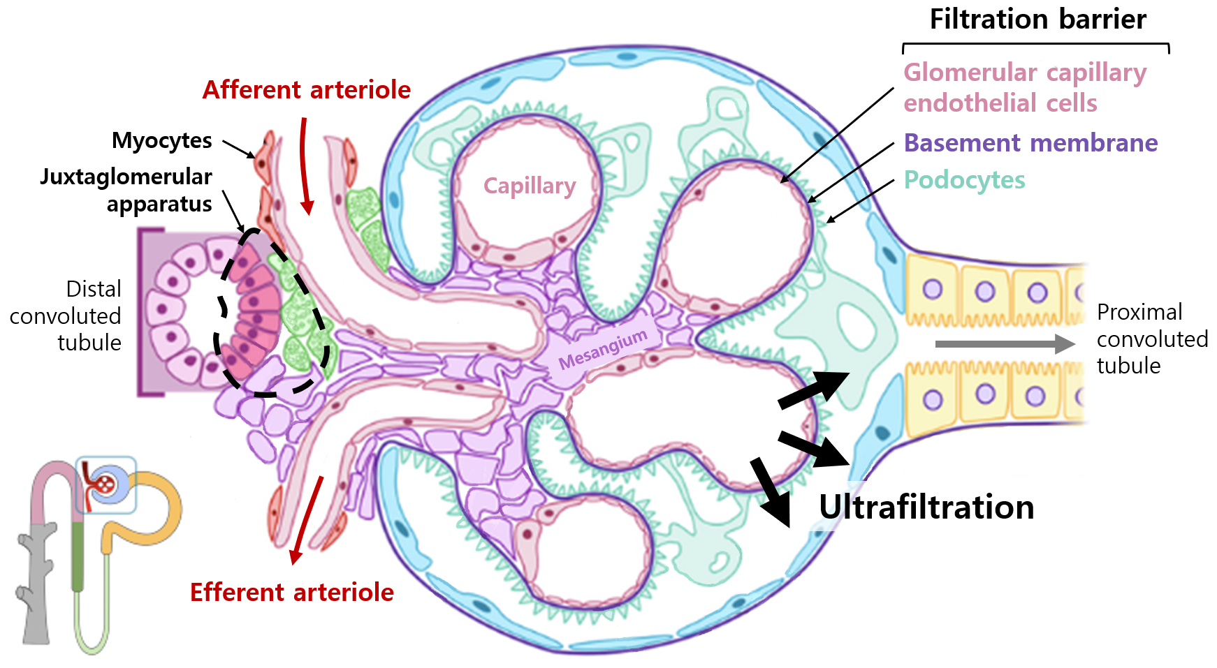(3) Myocytes, juxtaglomerular apparatus가 '얼마나 여과시킬지'를 결정