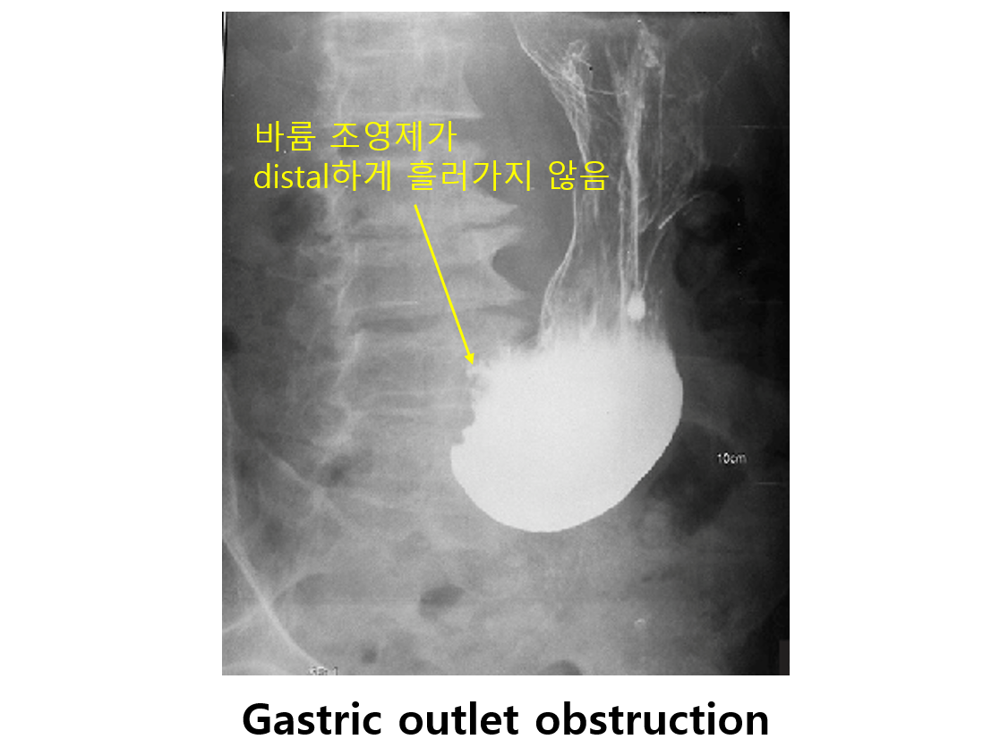 (1) 위날문(pylorus) 협착: 식후 구토, 복부팽만, 식욕부진