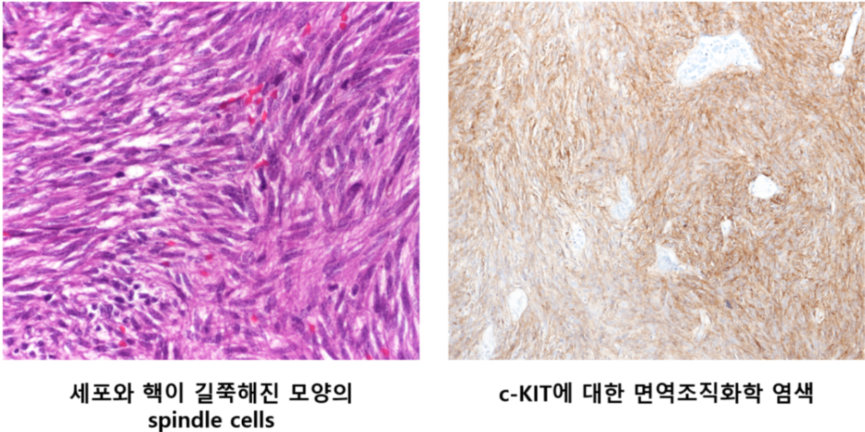 ② 면역조직화학 염색: c-KIT, CD34 등 GIST가 발현하는 표지자에 대해 염색