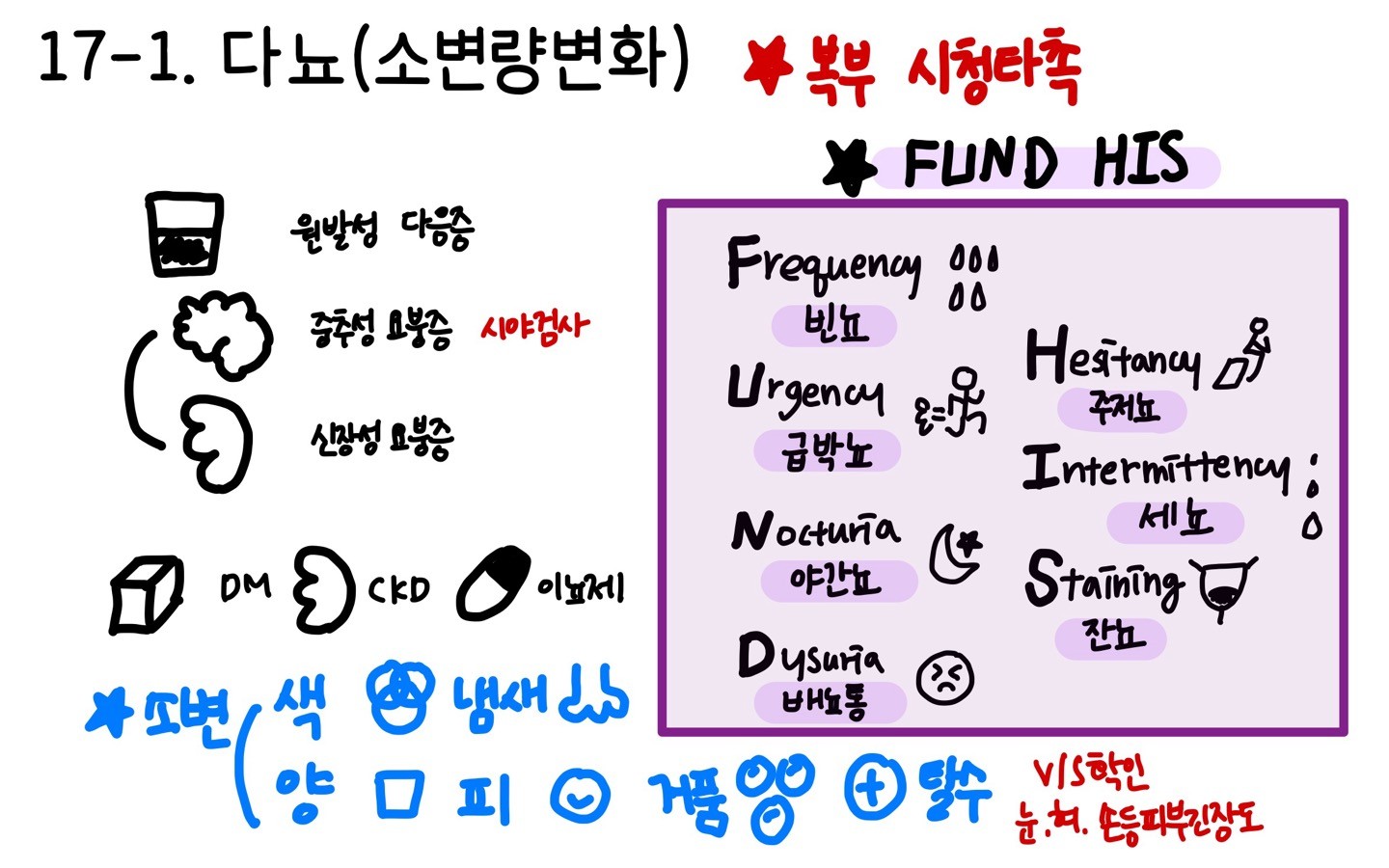 V/S 확인 → 눈, 입, 손등피부긴장도 → 인두발적(R/OPSGN) → 림프절촉진 → CVAT → 복부 시청타촉 → DRE