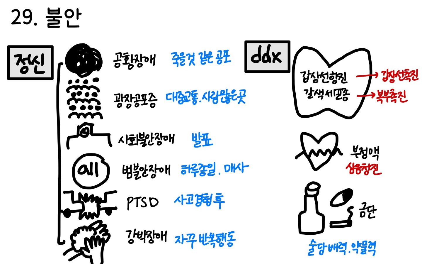 ① 정신과 : 공황장애, 광장공포증, 사회불안장애, 범불안장애, PTSD, 강박장애
