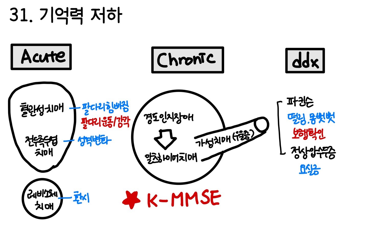 ① Acute : 혈관성치매, 전두측두엽치매, 레비소체치매