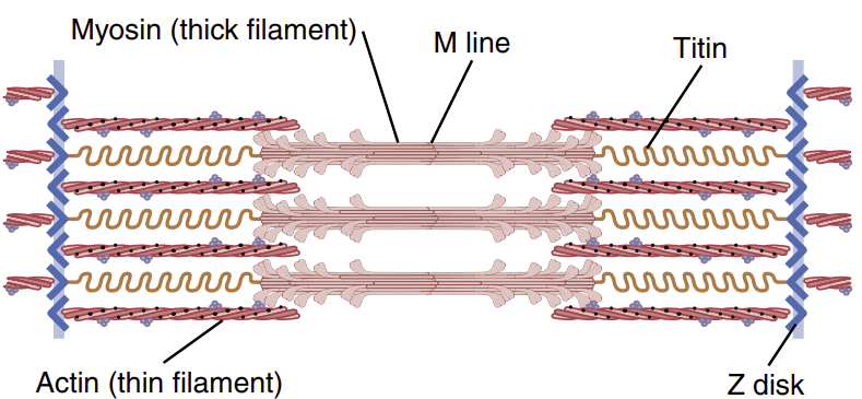 Titin | Z-선과 미오신 연결 | 근육의 탄성 유지 |