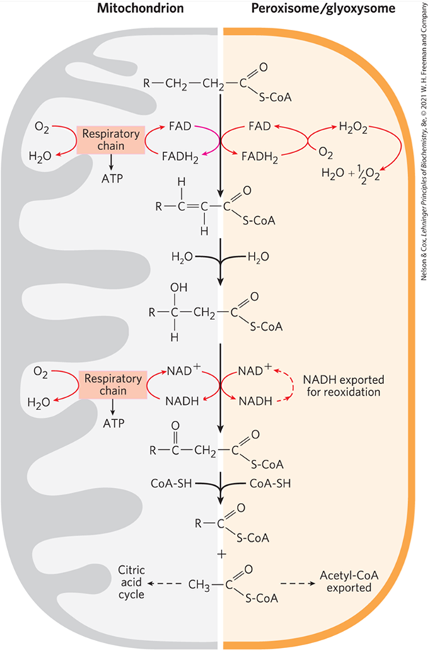 • 탄소 22개 이상의 very long faty acid, branched fatty acid 산화 진행