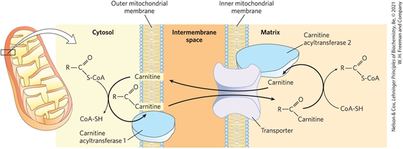 (4) 의의: 크기가 커서 내막을 통과하지 못하는 fatty acyl-CoA를 지방산 산화가 일어나는 미토콘드리아 기질로 이동