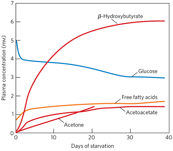 (2) β-hydroxybutyrate(케톤체): 금식 2~4일 후 급격히 증가