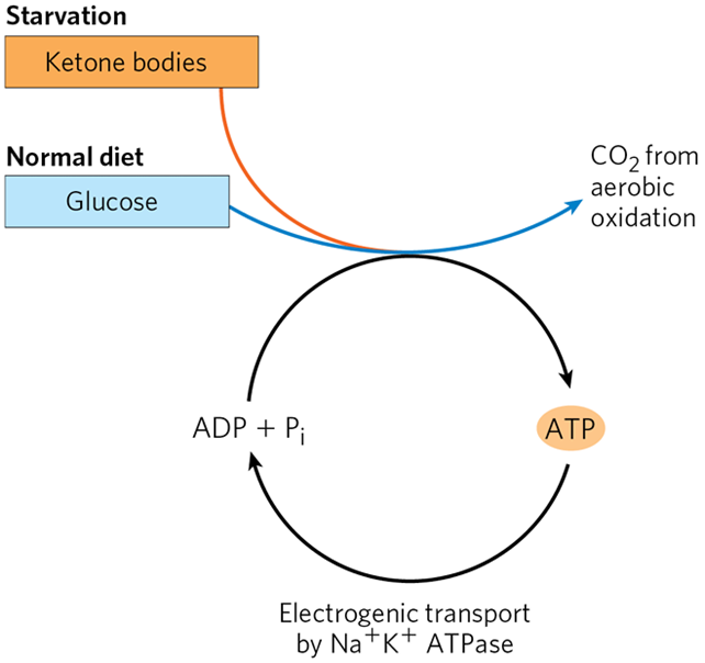 • 혈액뇌장벽(BBB; Blood brain barrier)로 인해 지방산 등을 사용하지 못함