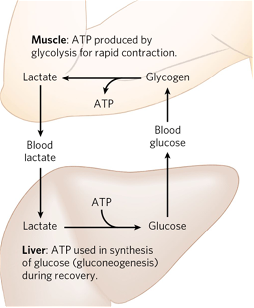 ① 간이 근육에 에너지 공급 (근육에서 대사 산물로 나온 lactate의 재활용)