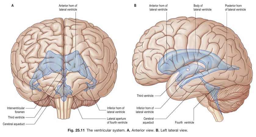 1) 뇌실: 뇌척수액의 존재 공간; 뇌압 조절에 중요