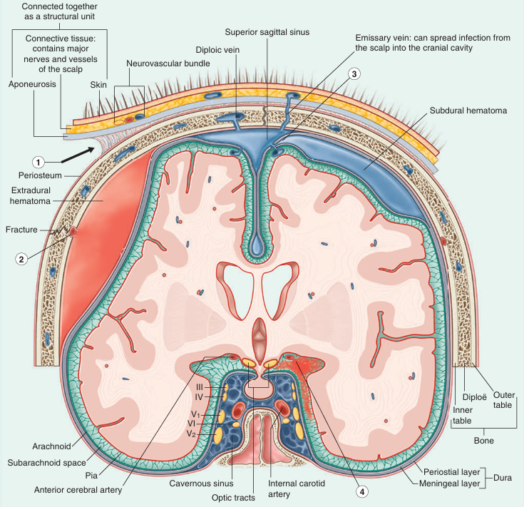 • 머리뼈 바깥의 감염이 머리뼈 내부로 파급될 수 있는 통로(∵ophthalmic v., pterygoid plexus의 유입)