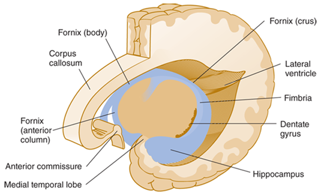 (2) 기능: Papez 회로(기억 회로); 일화 기억, 장기기억으로의 전환 등 담당