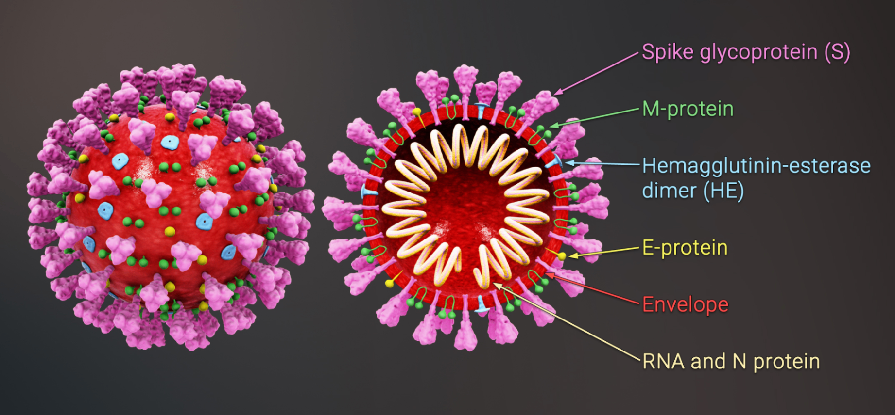 2) 바이러스 외피를 감싸고 있는 왕관 혹은 태양광환 모양의 돌기들이 특징으로, 라틴어로 이를 뜻하는 ‘corona’에서 이름이 유래되었다.