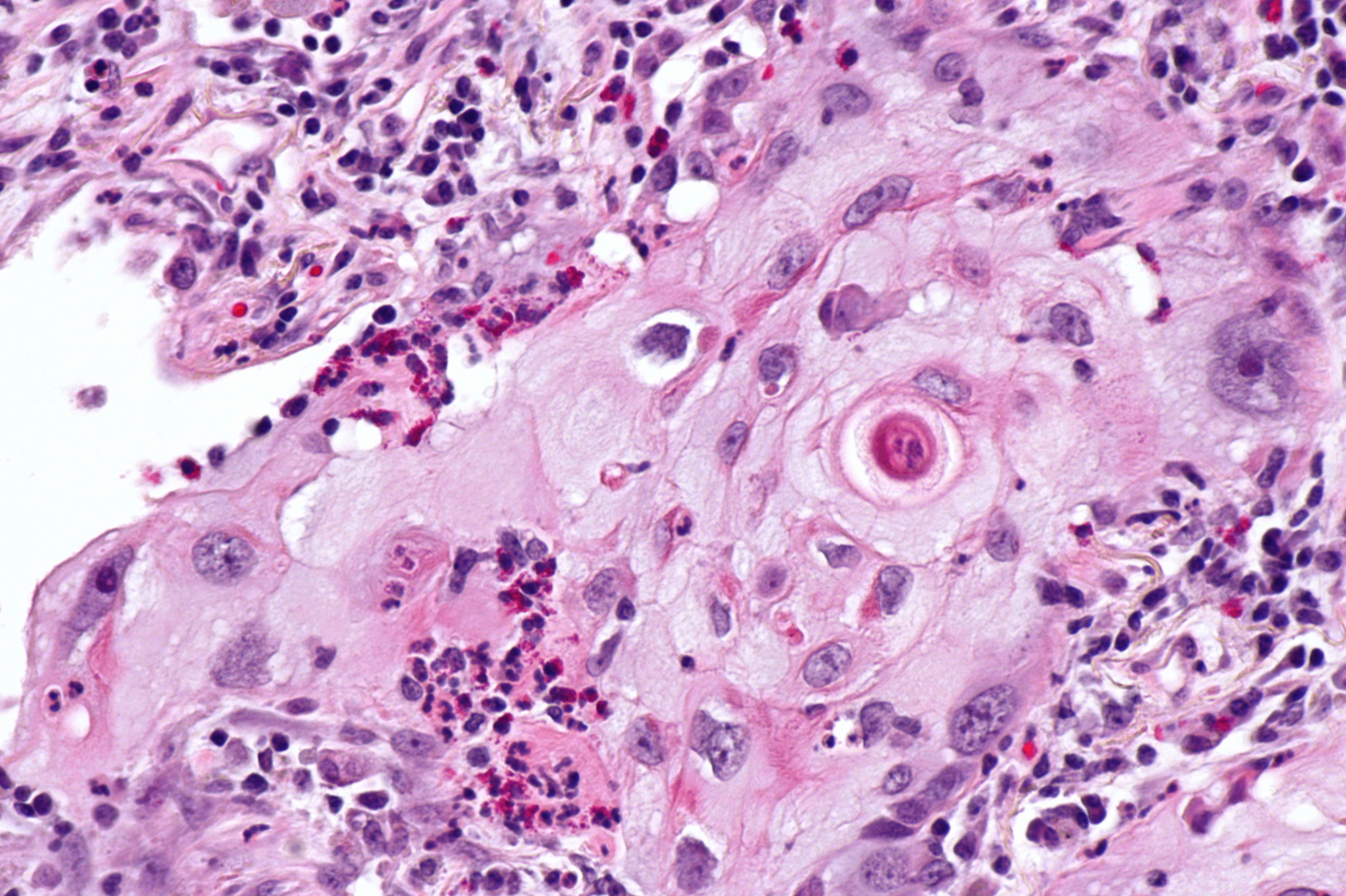 • 폐암 유형 중 흡연과 가장 높은 연관성을 보임; 비흡연자에게는 매우 드물게 발생
