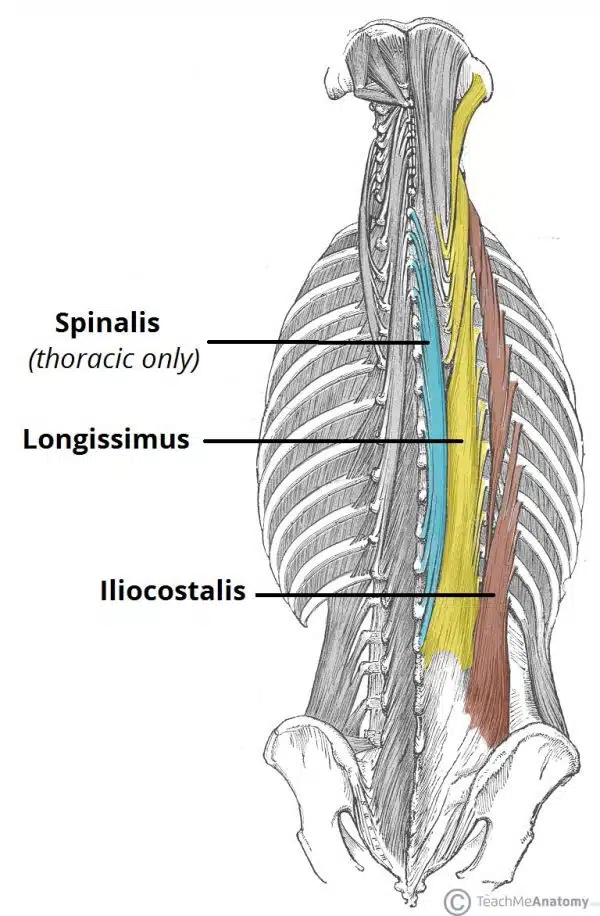 3개의 세로 기둥: Iliocostalis (외측), Longissimus (중간), Spinalis (내측)