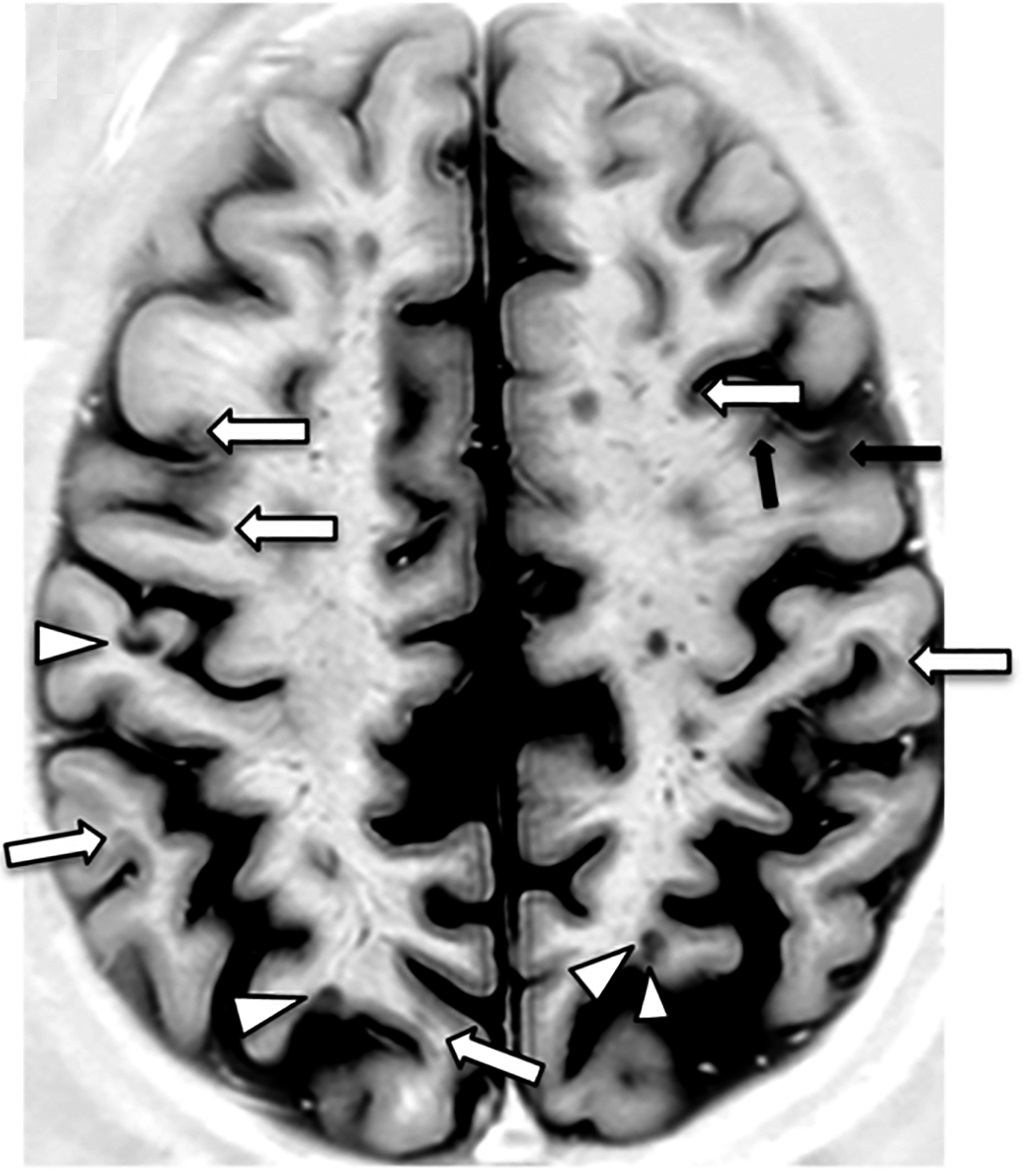 Axial PSIR MRI of a brain with multiple sclerosis lesions, Wikimedia Commons