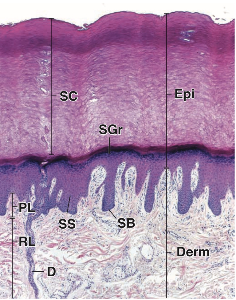 • 표피 줄기세포 존재 → 각질형성세포(keratinocyte) 지속 생성