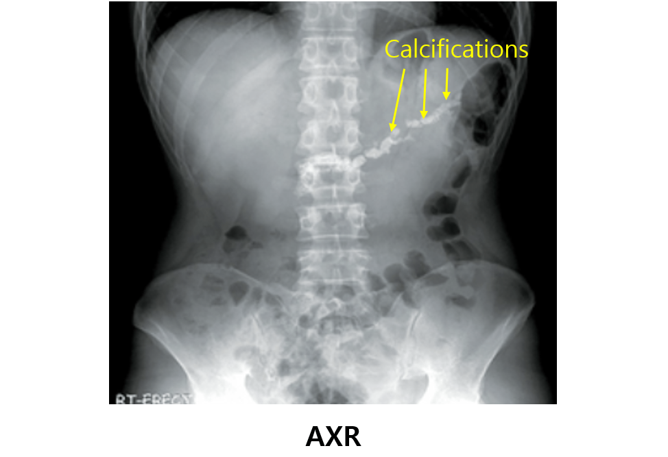 (1) AXR: Pancreatic calcifications