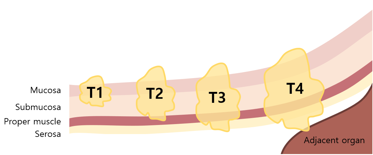 I | T1-2 N0 M0 | 점막층~근육층 내에만 국한 |